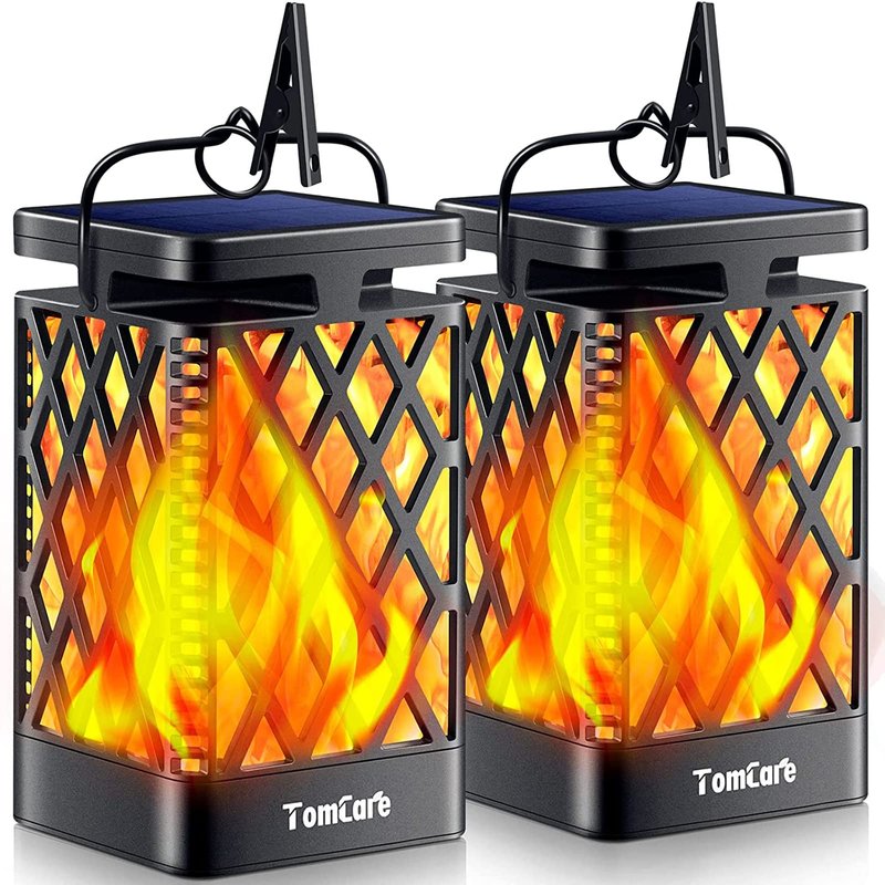 TomCare Solar Lights Outdoor Flickering Flame Solar Lantern Outdoor Hanging Lanterns Decorative Outdoor Lighting Solar Powered Waterproof LED Flame Christmas Lights for Patio Garden, 2 Pack(Black)