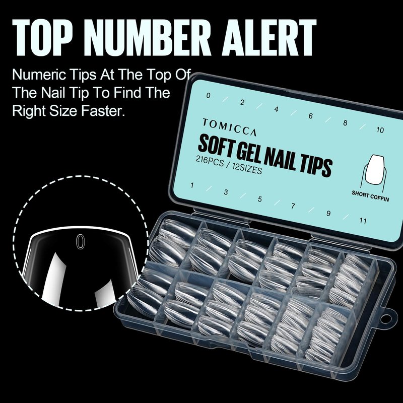 - MULTIPLE SIZES AND NAIL TYPES: TOMICCA offers 504Pcs of artificial nail tips in 12 different sizes. Suitable for most finger needs. Each false nail tip is individually numbered, so you're sure to find a full nail tips that fits your natural nails.