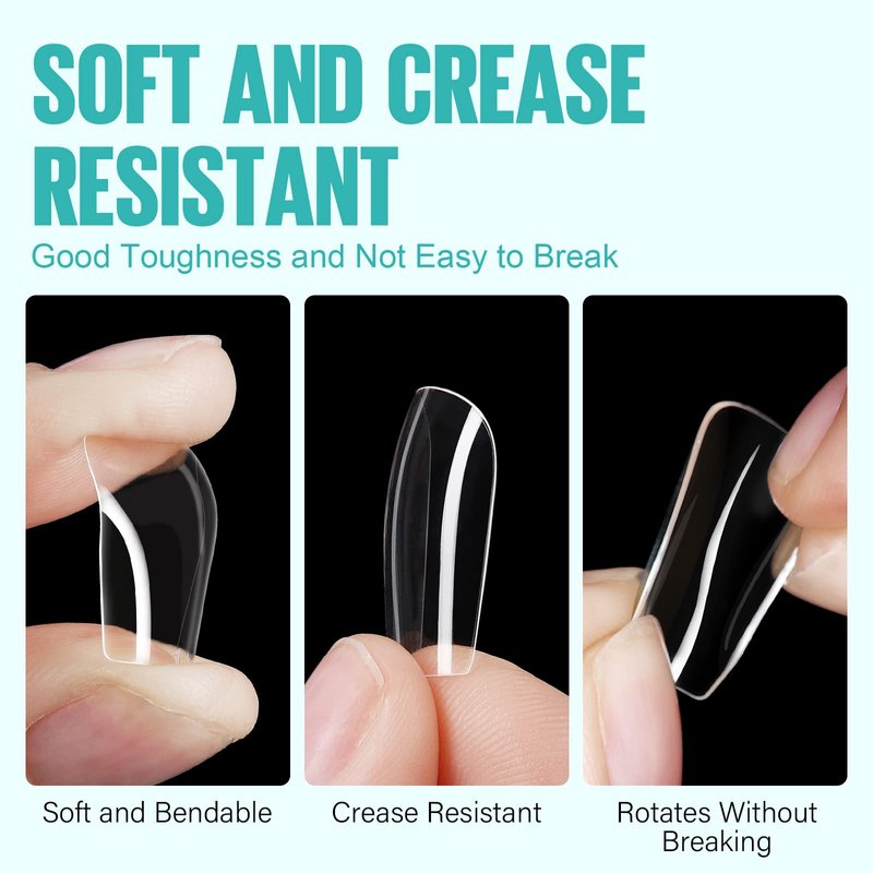 - LASTING TIME USE: Extensions nail in just 3 minutes and clear nail tips Lasting for over 21 days! TOMICCA soft gel nail tips provide optimal anti-breakage support for your extensions, and it effectively protects our natural nails.