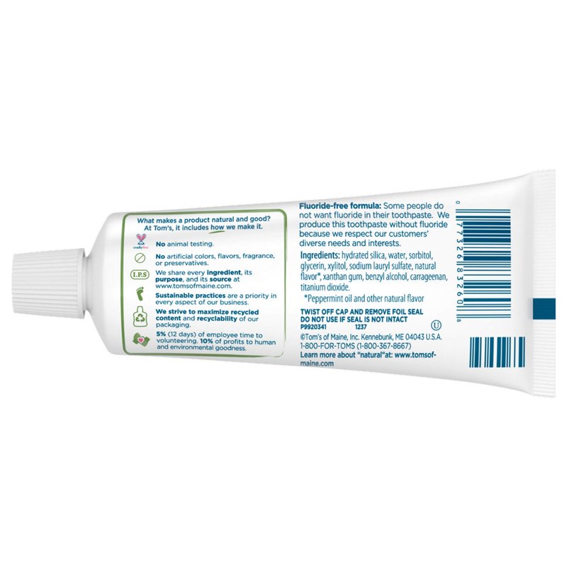 Tom's of Maine Travel Size Fluoride-Free Fresh Mint Toothpaste, 3 oz. (Packaging May Vary)