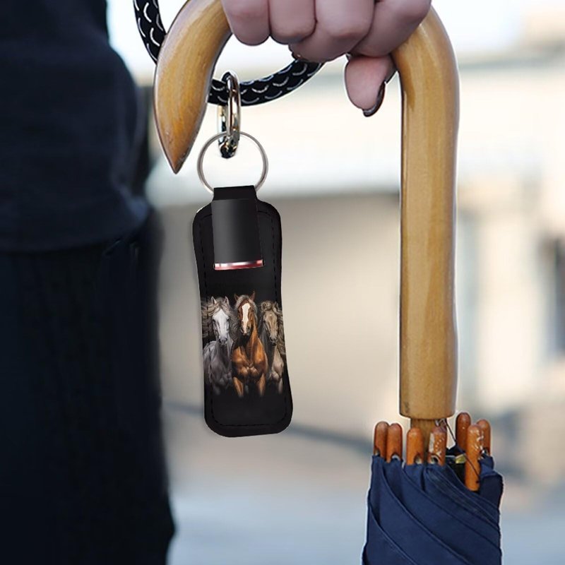 Tongluoye Horse Chapstick Holder for Women Small Gifts Lip Balm Keychain Holder With Clip-On Sleeve Pouch Stockings Stuffers Travel Accessories Lipstick Case Black