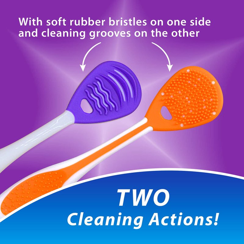 - 2️⃣ DUAL CLEANING ACTIONS: the tongue cleaner has both soft rubber bristles that help clean the tongue and cheeks and separate soft rubber cleaning grooves to clean away build-up.