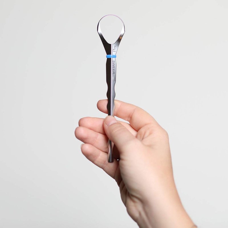 Designed by a dentist, the Tongue Sweeper is the only tongue cleaner used by leading dental schools; the patented design is preferred by professionals to treat bad breath. Plastic and bamboo tongue scrapers break easily, can't be sterilized effectively. Poor quality metal and copper tongue scrapers bend easily and can have sharp edges. Disposable tongue brushes need replaced frequently, add to landfills, and are not dishwasher safe. The Model T Sweep is designed with a one-handed grip and low-profile head to reduce the gag reflex for a more comfortable oral hygiene routine. The Model T Sweep has a slightly larger cleaning head than the Model P Tongue Sweeper, this assures a wider, deeper clean.