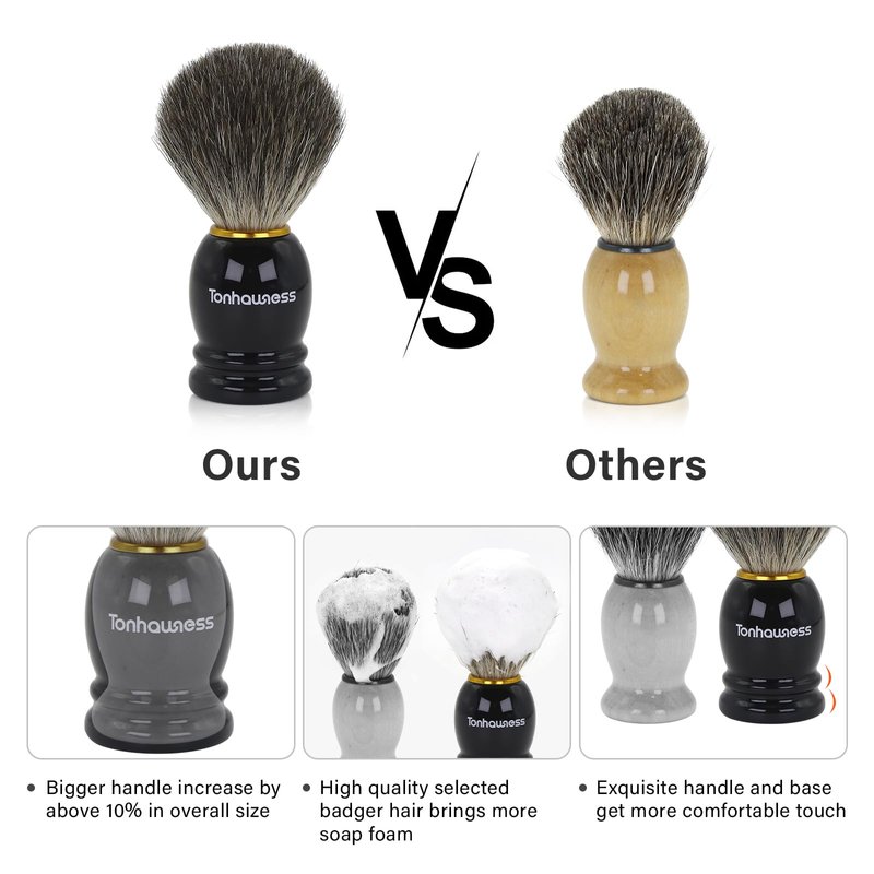 - 【Wood Crafted Handle】The shaving brush handle is crafted from birch wood, treated with manual baking paint crafts. The black shave brush handle is bigger and more comfortable, increase by 10% than others in size. 2 layers on the bottom of handle makes the shaving brushes more stable and durable.