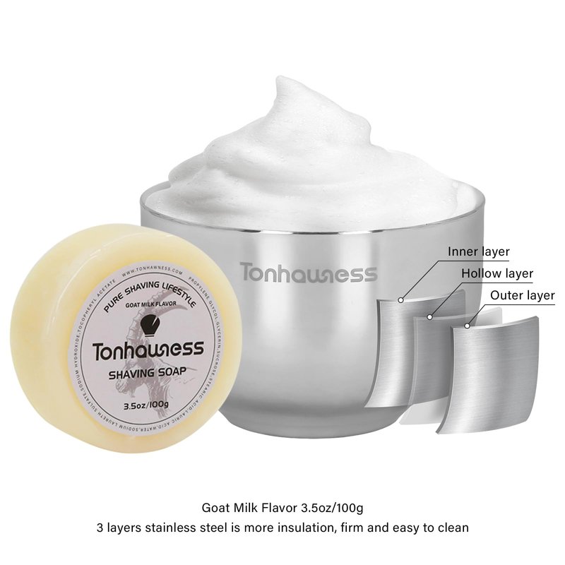 - 【Stainless Steel Shaving Bowl and Holder Kit】 The shaving bowl and holder include 3 layers stainless steel hollow heat insulation design which is inner, hollow and outer layers. Stainless steel shaving stand holder kit is integrated molding and stamping with particular design, no welding points.