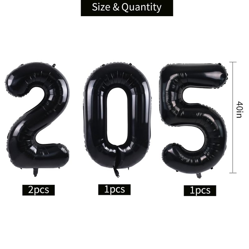 - PACKAGE INCLUDES-- 1* black 2025 foil mylar balloons with straw*1. Each number balloons measurement about 42 Inch.This glittering 2025 black balloon will create a magnificent atmosphere for your 2025 graduation ceremony, making the venue more beautiful and lively.