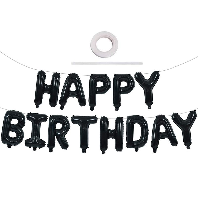 TONIFUL Black Happy Birthday Balloons Banner 16 Inch Mylar Foil Letters Birthday Sign Banner Bunting Reusable for Girls Boys Kids & Adults Birthday Decorations and Halloween Party Supplies