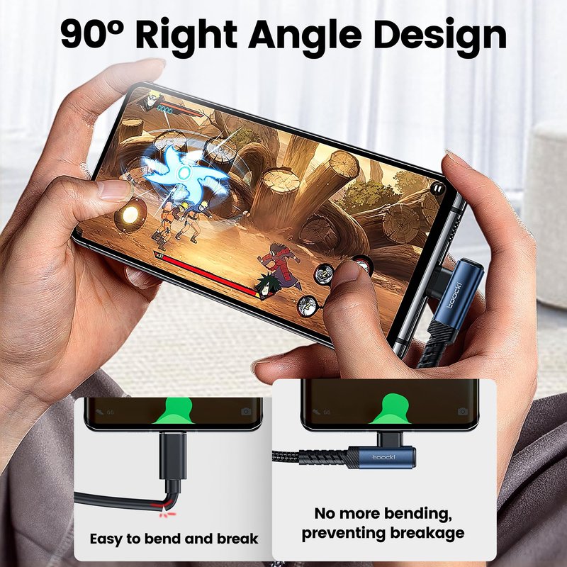 - Right Angle USB C Cable: This USB C charger cable is designed with 90 degree right angle, it provides the most comfortable grip, you are more relaxed and comfortable while charging whether you are playing games, watching videos or reading eBooks