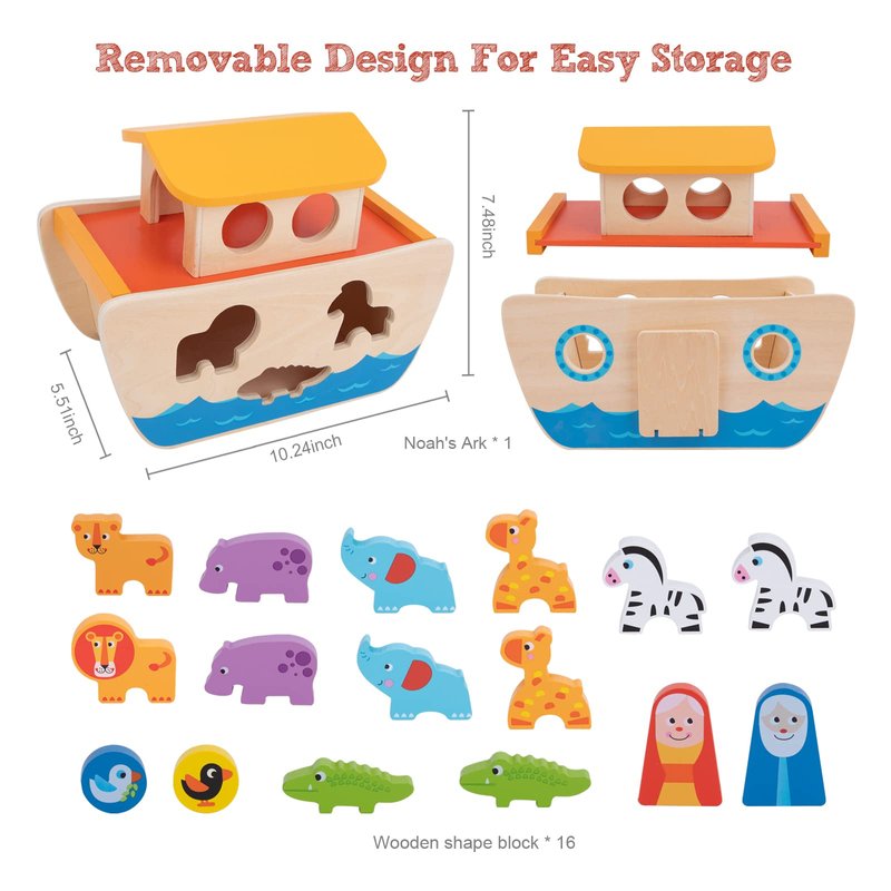 TOOKYLAND Wooden Noah's Ark Toys for Kids, Animal Shape Sorter Toys, Bible Story Toys Baptism Gifts for Girls and Boys, Montessori Toys for 2 3 4 Year Old