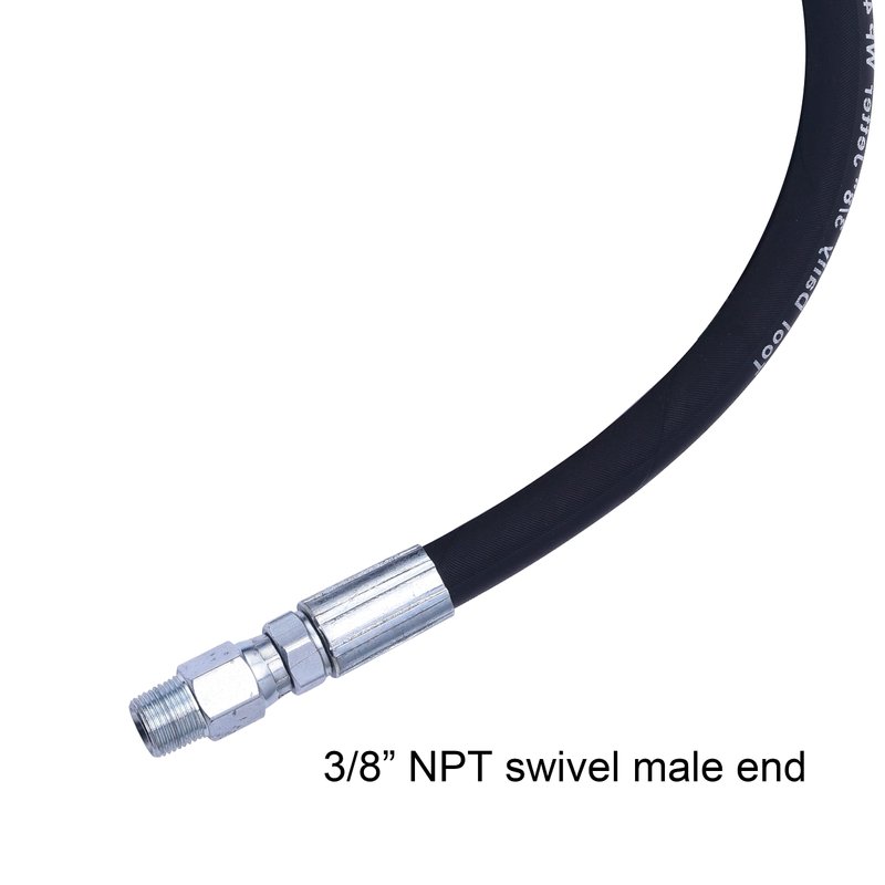 - Jumper whip Hose has 3/8” NPT solid male end and 3/8” NPT swivel male end, fit most pressure washer hose reel.