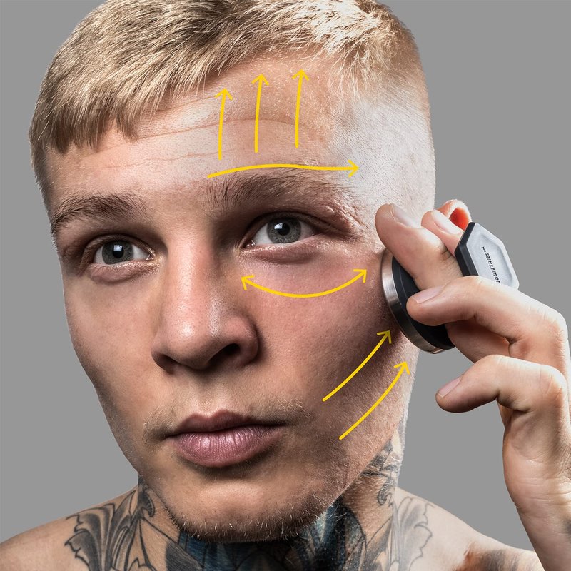 - PROPER USE OF YOUR TOOL - For eyes, press under each eye and move from inside to out; For jawline, press from chin to ear and move up with each stroke; For forehead, vertical strokes from brow to hairline; For eyebrows, press across the entire brow