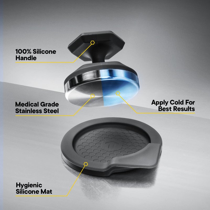 Reduce swelling and puffiness around your eyes with The Endswell Face Tool. This combat-sports inspired medical grade stainless steel facial tool is designed to reduce dark circles, and give a smooth, toned, and more lifted appearance to your skin. Features a custom silicone handle and hygiene mat.