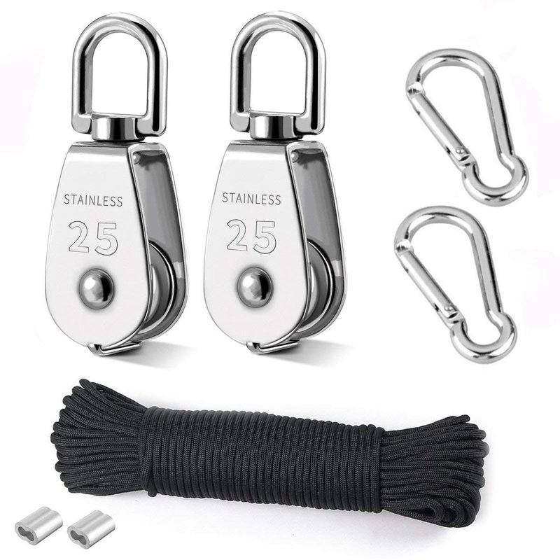 - Rope Pulley System: Stainless Steel Pulley Heavy Duty is anti-rust and wear resistance with strong structure, surface is shock light processing, whose main material is 304 stainless steel.
