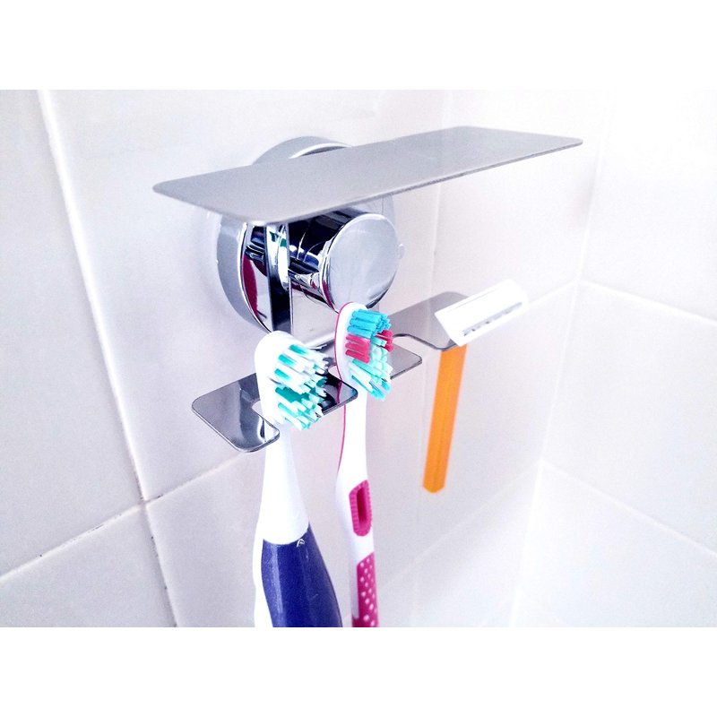 Toothbrush holder jewelry organizer for MIRROR WALL BATHROOM SUCTION CUP, EASY INSTALLATION Fits 9mm WIDE toothbrushes which is 95% of all toothbrushes in the market. SLOTS – Holds 4 toothbrushes: electric & traditional. Has space for your RAZOR. HIGH QUALITY304 Stainless-steel holder is rustproof with a very classy chrome, suction can hold up to 10lbs. 100% Satisfaction Guarantee!