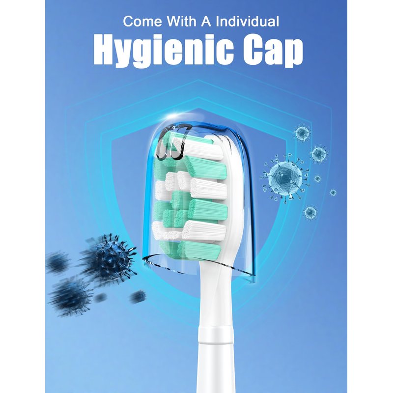 - 8X EFFECTIVE CLEAN & IMPROVE ORAL GUM HEALTH: The contoured sonic toothbrush bristles for replacement brush heads fit your tooth shape, can reach difficult-to-clean areas, and work better in the oral cavity. The densely-packed bristles for toothbrush heads with powerful vibration can remove up to 8X more plaques than a manual toothbrush.