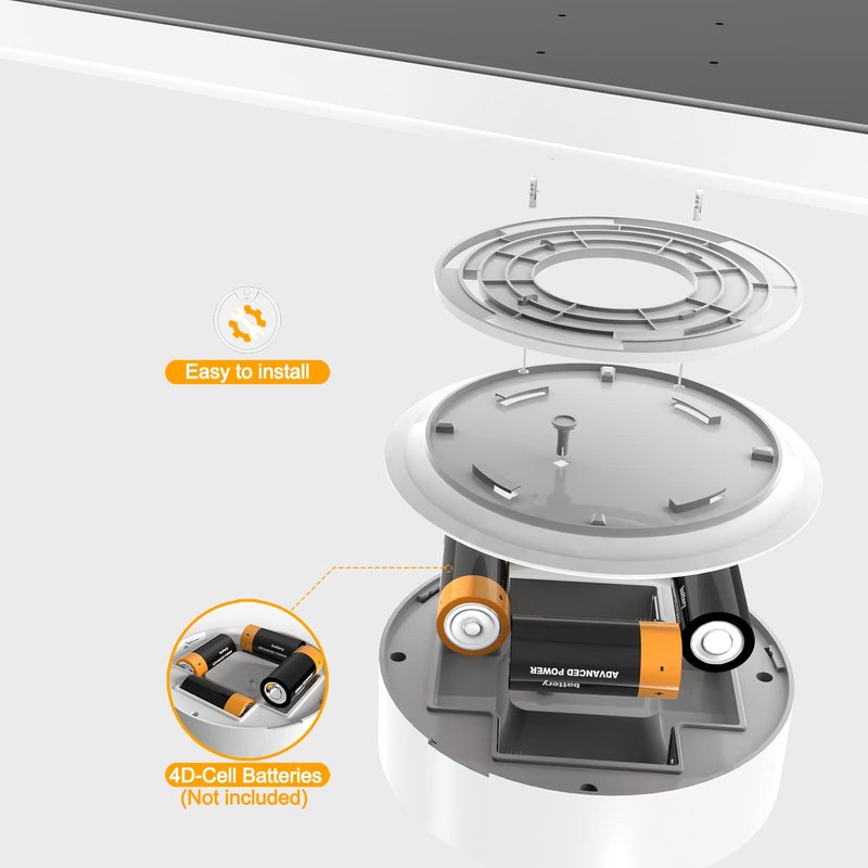 - Energy Efficient Battery Powered Light: 4 D-cell batteries (not included) Our quality LED never needs to be replaced. It’s so efficient; you will get more than 6 monthes of light on one set of batteries. Kindly noted: We stick a blue film on the silver part to keep it clean, you can tear the blue protected film off before you used. Tips:This ceiling light is not usb-rechargeable,but you can use rechargable D-cell battery