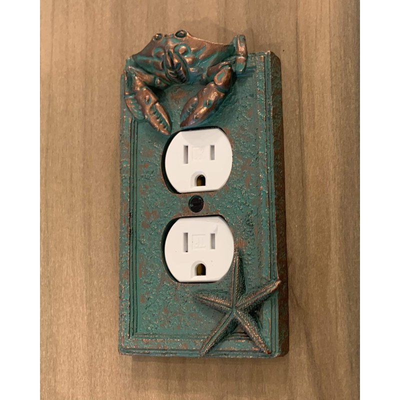 Add a little rustic beach flair to your favorite room with these easy to install Crab, Seashell and Starfish themed electrical covers from Top Brass Home Decor. Made from hard, durable poly-resin material with a beautiful bronze / verdigris finish. Mounting screws included!