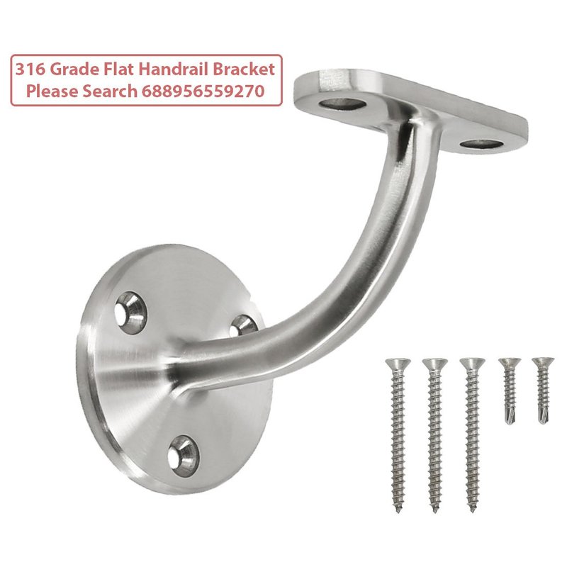 Stainless steel 304 handrail bracket, satin finish Attaching the cover to the base plate firmly with regular silicone 3 holes for strength and support with flange cover For round metal or wood top rail.