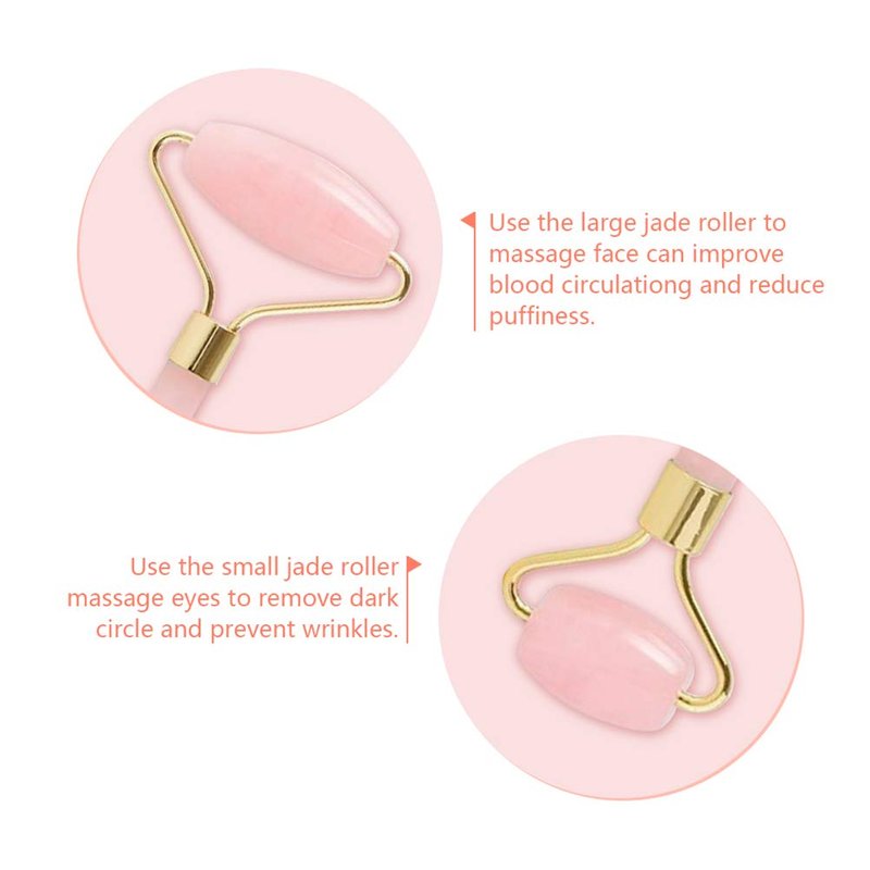 - PERFECT AND CONVENIENT DOUBLE ROLLER DESIGN: Our facial rose quartz roller uses a double-sided roller design to provide you with easy application for your entire body. Use the smaller roller for areas around eyes, nose and lips. Use the large one for forehead, cheeks and chin and slowly continue to roll on neck, collar bones, shoulders, wrists and forearms. Don’t forget that pampering the area under your chin is just as important as the face itself! You can use the roller anytime, anywhere.