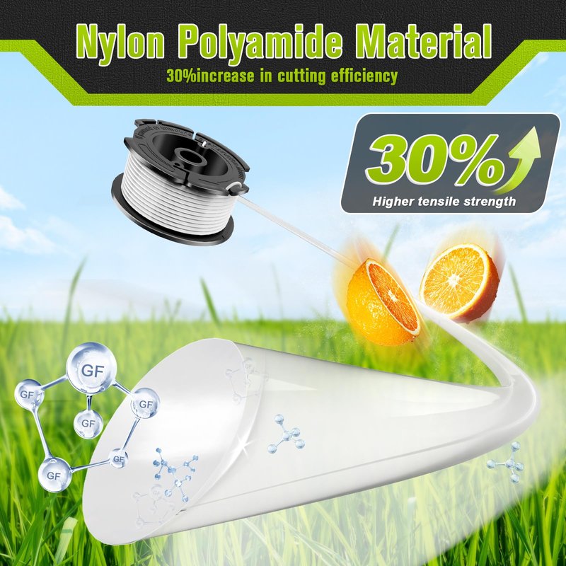 - Length 30 feet trimmer line provides a wider range of mowing area; 0.065 inches diameter wearable line supports fast cutting and easily cuts through grass and weeds.Premium quality AFS automatic feed spool & durable polyamide nylon thread, pliable and flexible and long service life. Use centrifugal force and aerodynamics to reduce drag and achieve fast cutting.