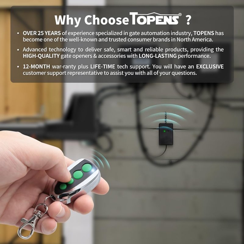 - Customer Service and Technical Support - All the TOPENS products come with a 12-month war-ranty against defects, a 30-day worry-free exchange & return and lifetime tech support. Visit TOPENS website for the user manual, installation video, and personalized service. TOPENS is ready to offer professional solutions for any questions or assistance. Enjoy an easier and smarter life by ordering TOPENS products.