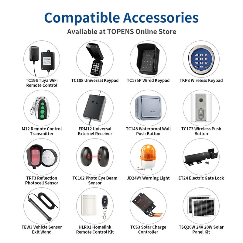 - Customer Service and Technical Support - All the TOPENS products come with a 12-month war-ranty against defects, a 30-day worry-free exchange & return and lifetime tech support. Visit TOPENS website for the user manual, installation video, and personalized service. TOPENS is ready to offer professional solutions for any questions or assistance. Enjoy an easier and smarter life by ordering other TOPENS accessories.