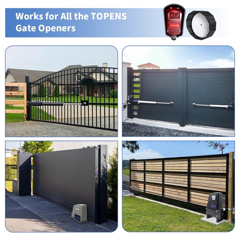- Wide Compatibility - Works with all the TOPENS gate openers, and compatible with most third party swing / sliding gate opener or garage door opener whose control board accepts “Normal Open or Normal Close Dry Contact” signal. It can be powered by the control board of the gate opener or by the external 12-30VDC or 10-25VAC power source. This safety beam sensor is commonly used for the household, courtyard, farm, ranch, warehouse and other commercial / industrial sites.