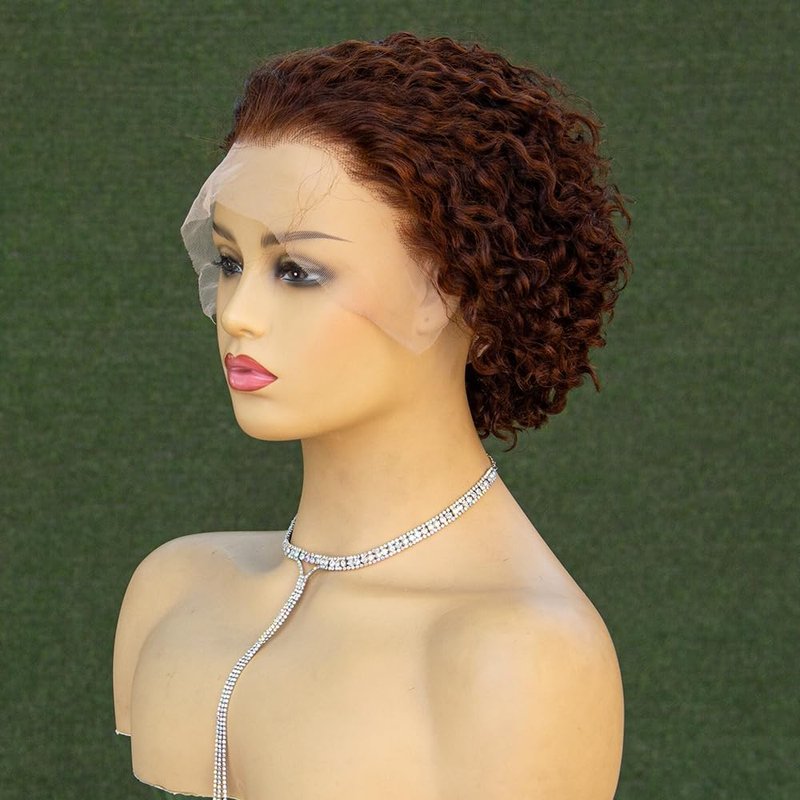 Topnormantic Pixie Cut Short Curly Wigs for Black Women Human Hair Brown Color 13x4 Wet and Curly Lace Front Wigs Pre Plucked with Baby Hair Brazilian Virgin Hair Transparent Glueless Wigs 6 Inch