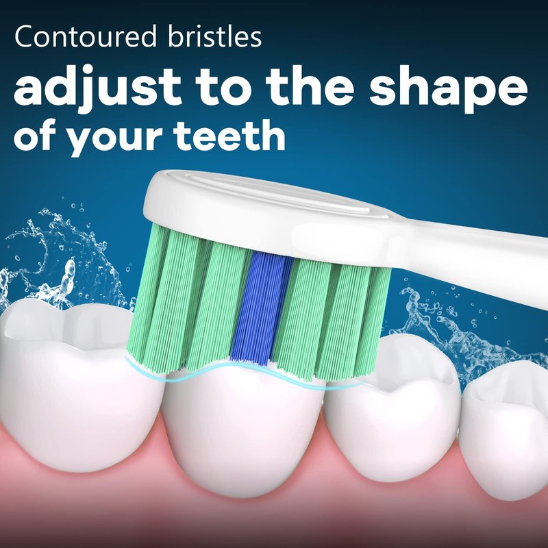 - 【Effective Plaque Removal and Minimizes Gingivitis】High-quality bristles remove up to 7x more plaque than a manual toothbrush. The top contoured bristles on our electric toothbrush heads fit naturally to the shape of your teeth. And the specially curved power tip makes brushing hard-to-reach areas easier than ever.