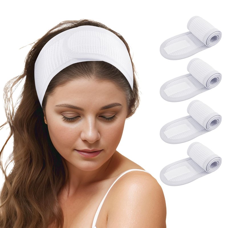 TopTie 4PCS Cotton Spa Facial Headband Waffle Terry Cloth, White Hair Wrap for Skincare Face Washing