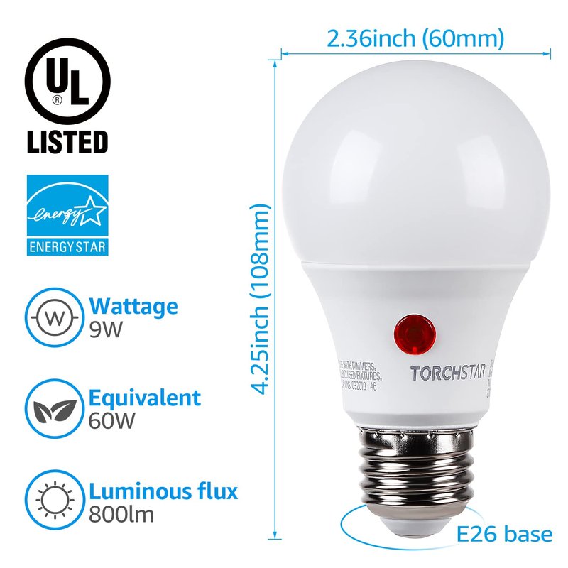- Sensitive Dusk to Dawn Sensor: This A19 LED bulb works properly even in lighting fixtures or close to other fixtures by only detecting sunlight rather than other light sources
