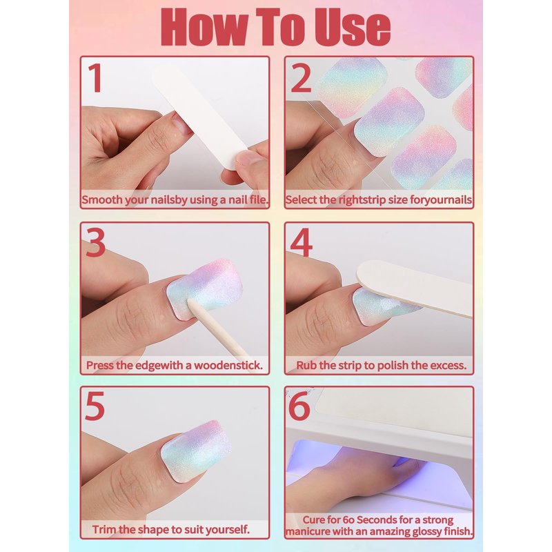 - 💖 Time Saving: The long lasting nail polish strips are easy to apply, trim, and remove. And it saves you a lot of time and is beginner-friendly. It's also easier and faster than applying nail polish alone, so you can achieve salon-grade gel nails in minutes!
