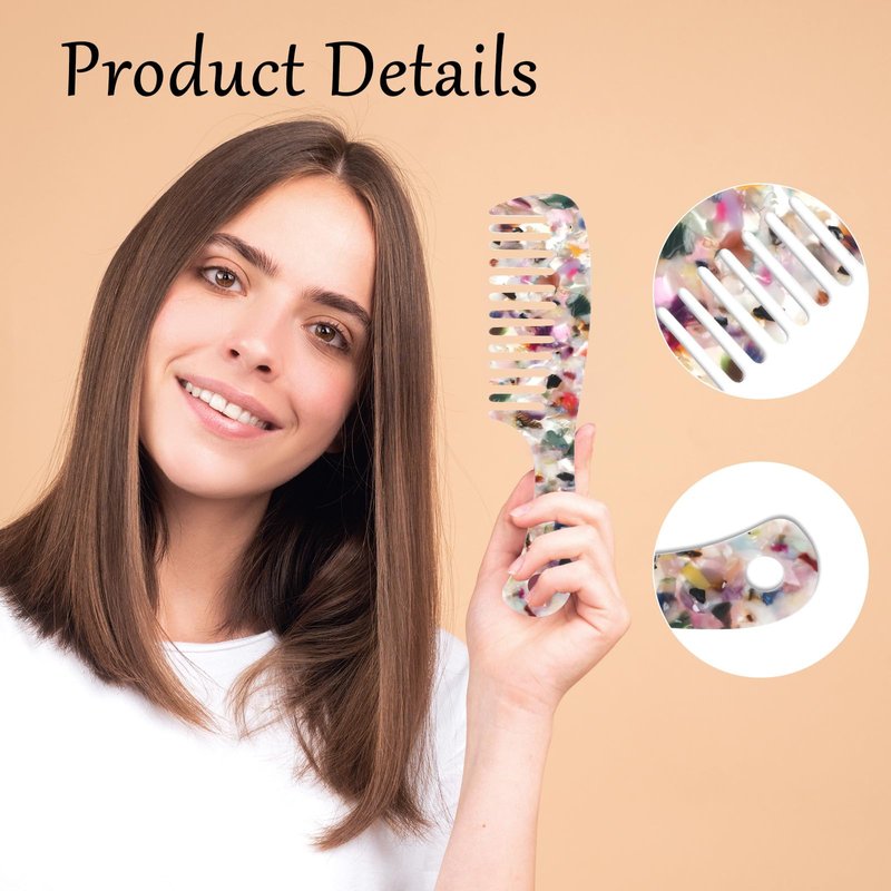 - Durable Material: Crafted from cellulose acetate, this color wide-tooth comb is strong, durable, and features a beautiful, exquisite color. Dimensions: 7.3 inches in length and 1.7 inches in width.