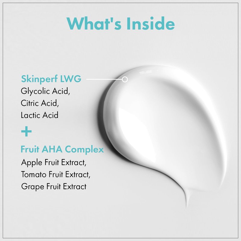 - The hydra-fresh formulation containing Glycolic Acid, Lactic Acid, and Fruit AHA Complex helps release and minimize pores, controls excess oil, balances sebum production, and keeps skin moisturized without a sticky sensation.