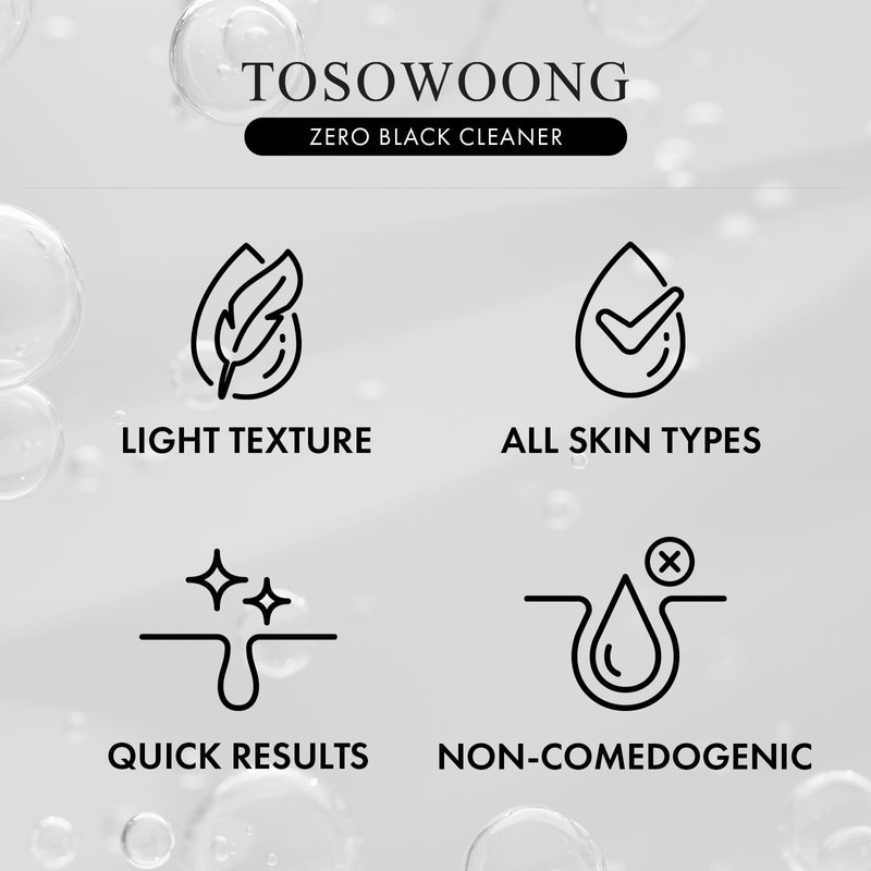 TOSOWOONG Zero Black Cleaner, Blackhead Remover with Salicylic Acid, Witch Hazel and Charcoal, Exfoliating Face Wash, Sebum Softener and Chemical Peel for Face, Korean Skin Care, 50ml, 1.69 fl. oz.