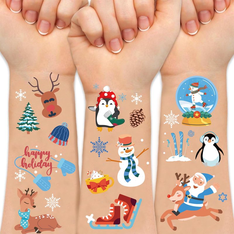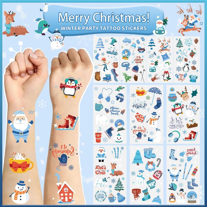 Christmas Temporary Tattoos Cartoon Stickers Tattoo Waterproof Body Face Art Disposable Fake Tattoo Stickers for Women Adult Winter Decoration Supplies