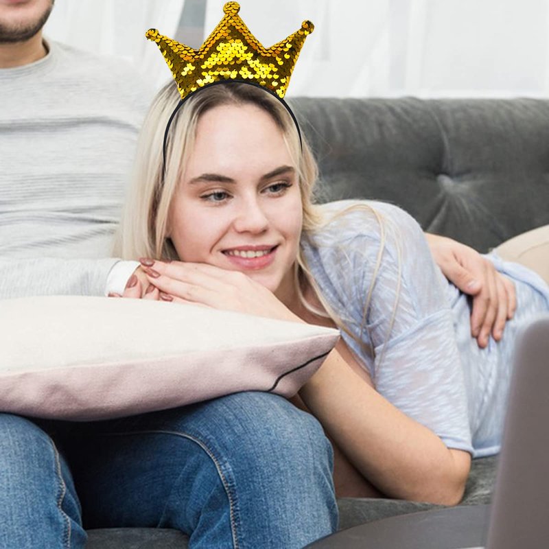 Totelux Sequins Crown Headband Girls Hair Bands Glitter Crowns Hair Hoop Women Hair Accessories for Party Favors Headdress Decoration Supplies Gift (Gold)