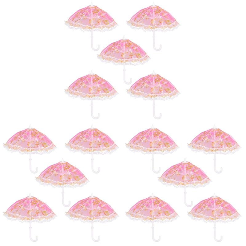 Totority Mini Umbrella Cute Doll Umbrella,15 Pcs Mini Parasol Toys Mini Lace Umbrella Beach Toys Small Parasol Prop Mini Vintage Umbrella Kids Play House Accessories Miniature Umbrella