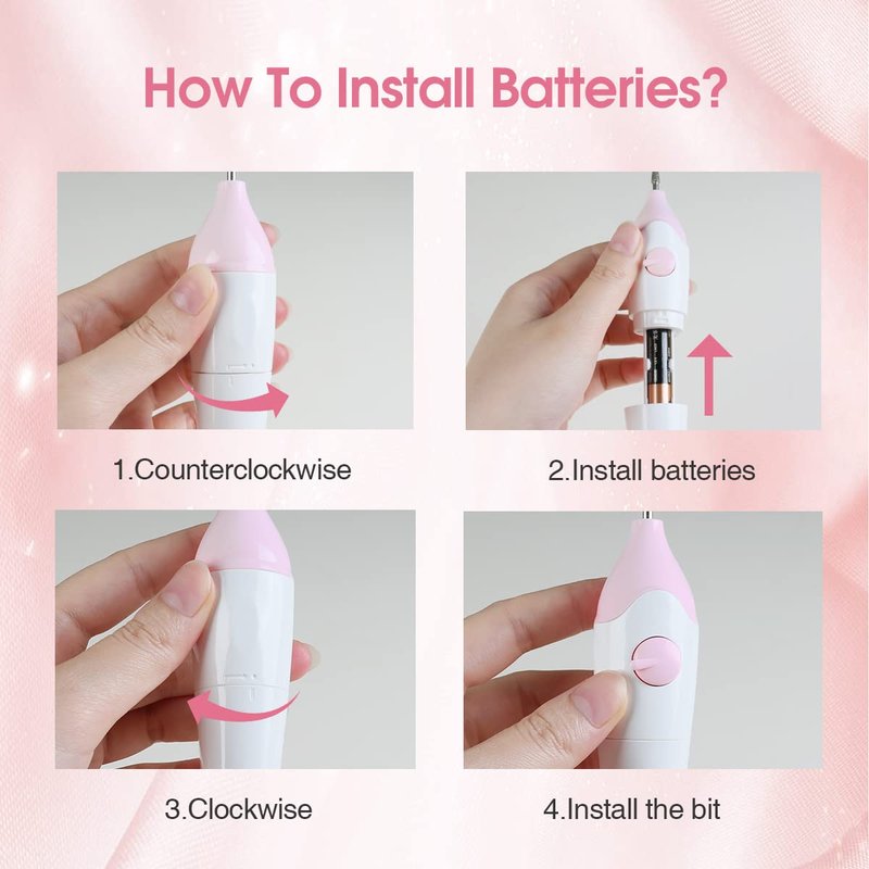 - Portable electric manicure set is just insert 2 AAA batteries(not included), One button design is easy to use for anyone. lightweight enough can take it when you go to travel or outside