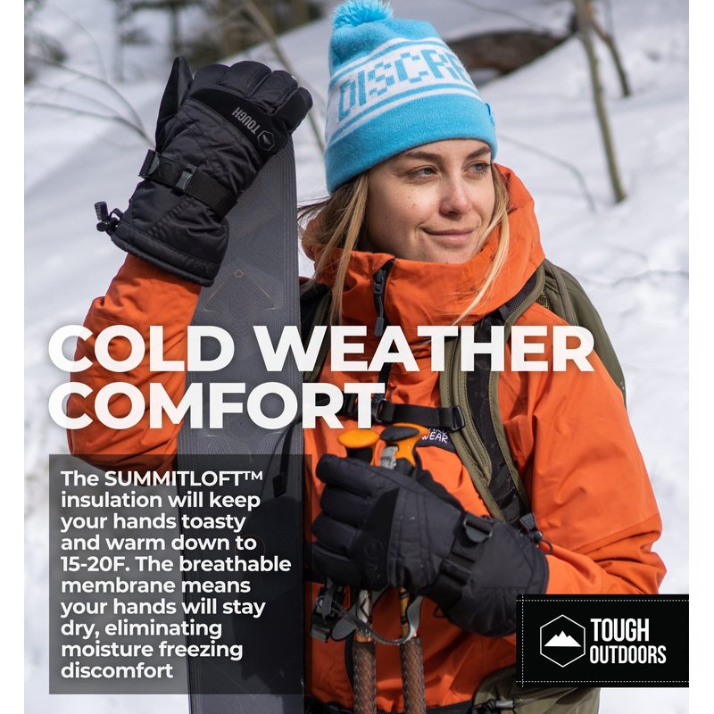 - BEAT THE COLD: Your hands have never met warmth and comfort like this. Our waterproof snow gloves feature SUMMITLOFT insulation for even the most extreme sub-zero temperatures. From skiing and snowboarding to other demanding snowy winter activities, these insulated gloves for men and women allow you to enjoy longer, warmer days on the slopes.