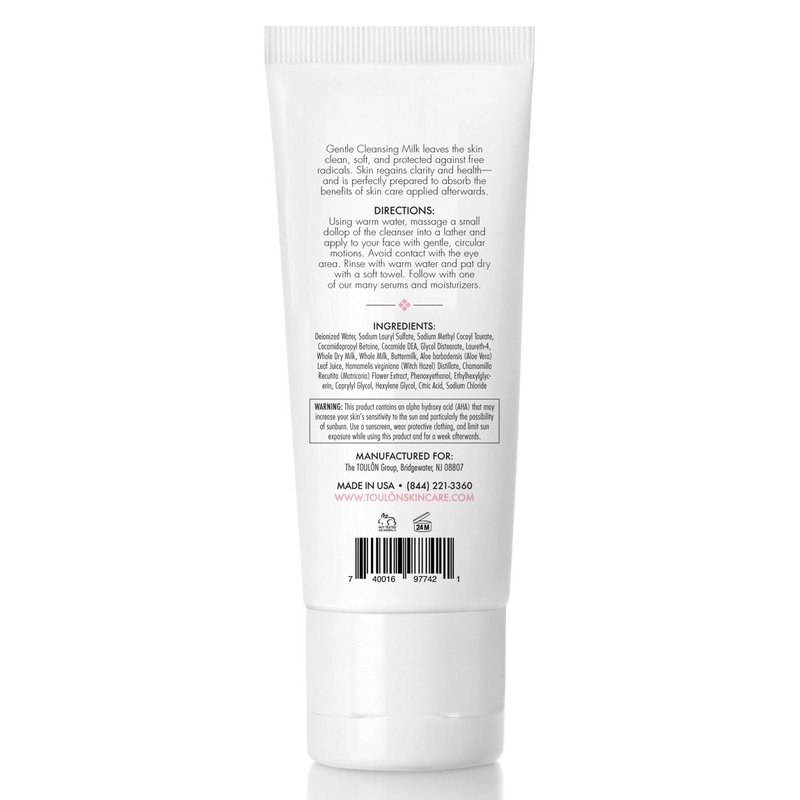 TOULON Gentle Milk Cleanser: Face Wash for Dry & Sensitive Skin; Mild Facial Cleanser with AHA, Lactic Acid, Aloe Vera & Antioxidants for Women