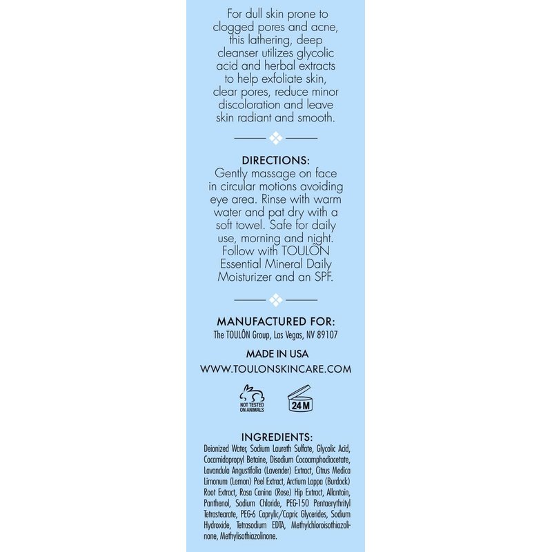 TOULON Glycolic Acid Facial Cleanser: Alpha Hydroxy Face Wash with AHA, Vitamin C & Rose Hip to Exfoliate Dry, Sensitive Skin for Women & Men