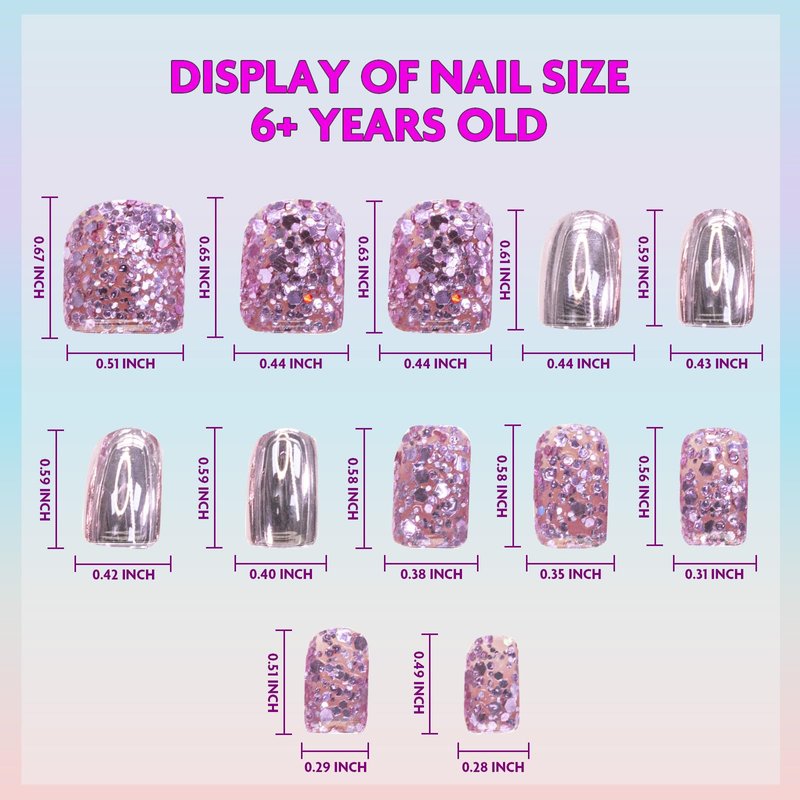 Townley Girl 96 PC Press- On Nails Set, Glitter and Glam, False Nails Set for Tweens with Pre-Glue Full Cover Acrylic Nail Tip Kit, Great for Gifts, Parties, Sleepovers and Makeovers