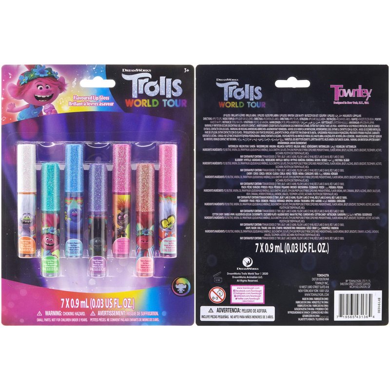 Trolls World Tour - Townley Girl Super Sparkly 7 Pieces Party Favor Lip Gloss Makeup Set for Girls Kids Toddlers, Perfect for Parties Sleepovers Makeovers Birthday Gift for Girls above 3 Yrs (7 CT)