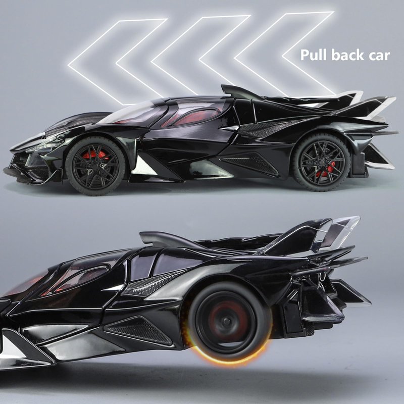 Toy Cars Apo Project EVO Model 1:24 Metal Diecast Car Toys with Light and Sound Pull Back Car for 3 4 5 6 7 Year Old Boys (Black)