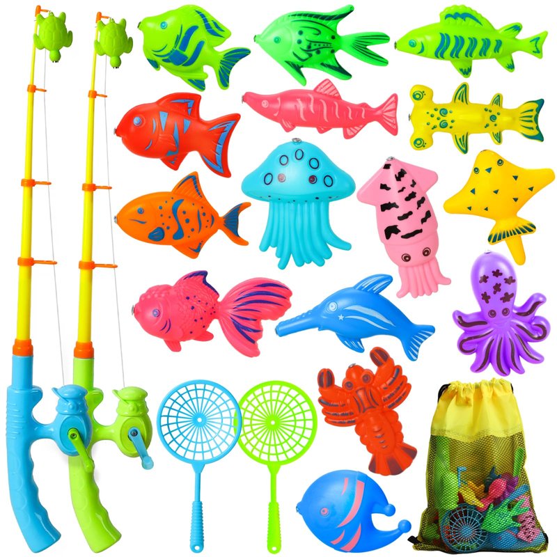 - Vibrant Magnetic Fish: Dive into a world of colors and imagination with our assortment of beautifully crafted magnetic fish in various shapes and sizes. Equipped with powerful yet safe magnets, the fishing rods easily hook the magnetic fish, creating an exciting and successful experience for young anglers.