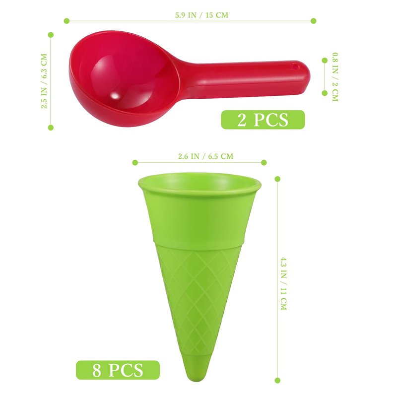 - 2 sets in total. Each set includes 1 pieces scoop and 4 pieces ice cream cones.