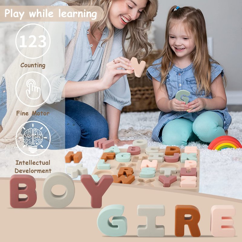 - 📐 EDUCATION & ENTERTAINMENT:Silicone alphabet puzzle for children. This 2-year-old children's puzzle game is an interesting way of learning while playing to improve children's cognitive and coordination abilities.