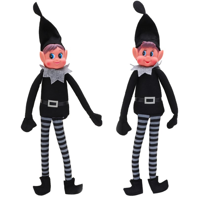 Toyland® Elves Behavin Badly Set of 2-12 Inch Girl & Boy Elf with Black Clothing Soft Toys with Long Legs, Soft Body & Vinyl Head - Christmas Novelty Toys