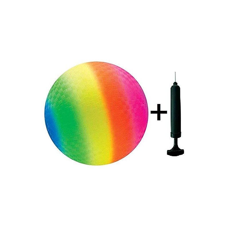 Toys+ 8.5 Inch Colorful Playground Ball + Pump (Rainbow)